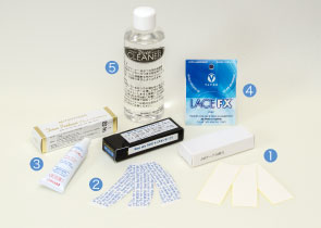 - ❶ 3Mテープ(30枚入り) 一般的なカツラ用両面テープです。
